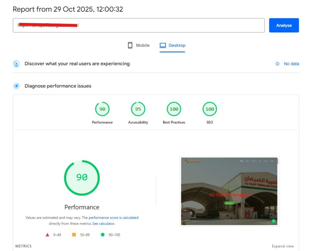 - HTTPS: The site URL uses HTTPS — good. (e.g., “https://alnajoffiberglass.com” appears)
